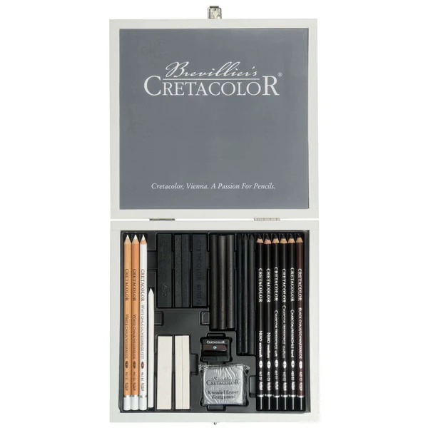 Cretacolor Wooden Box Black & White Charcoal Set of 25 Pcs