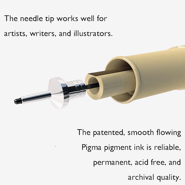 - 8 ultra-fine plastic drawing nib sizes.