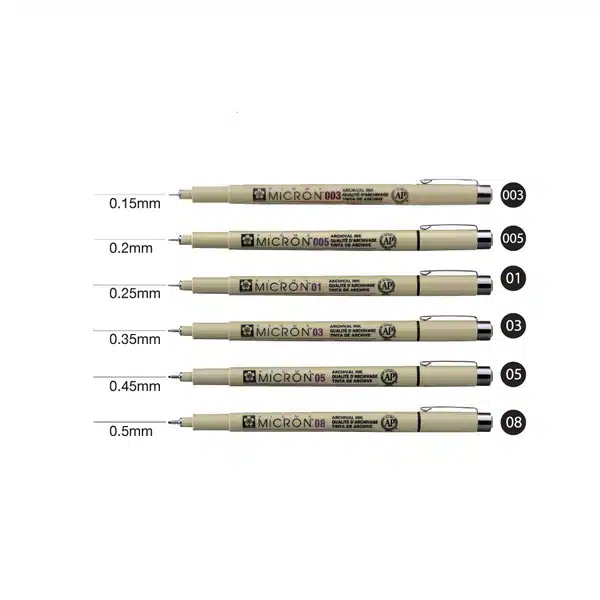 Pigma Micron ruling pens are permanent and waterproof; over the years, designers, scientists, archivists, manga artists, comic book artists, illustrators, and hobbyists have remained loyal users.