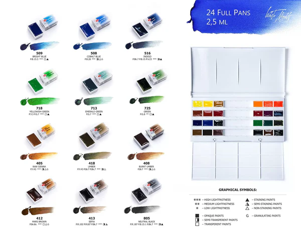 White Nights Artist Watercolor set of 24 Full Pans Saint Petersburg Edition Plastic Box