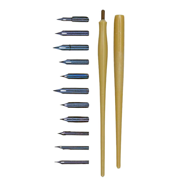 - It contains 11 nibs includes one Mapping and one Drawing pen holder and a magnet. Made in the UK.